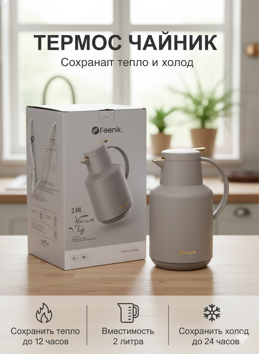 • Вакуумная внутренняя бутылка — сохраняет тепло и холод до 12 часов